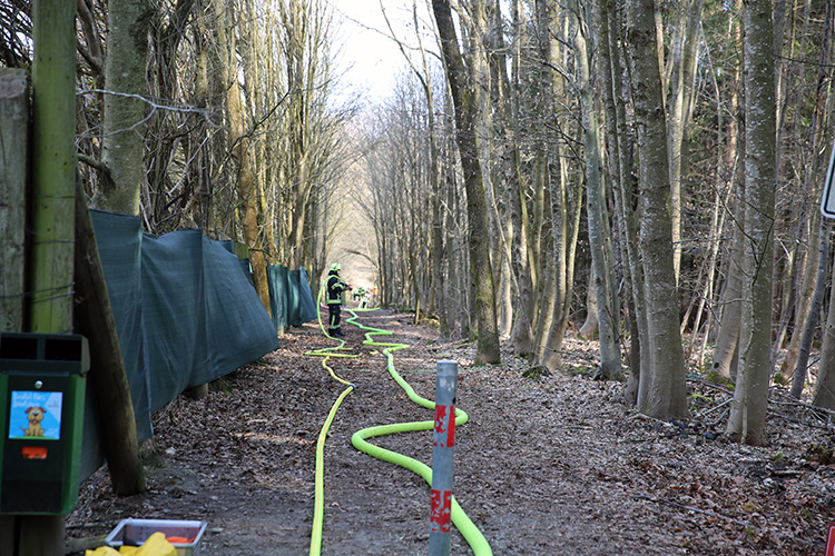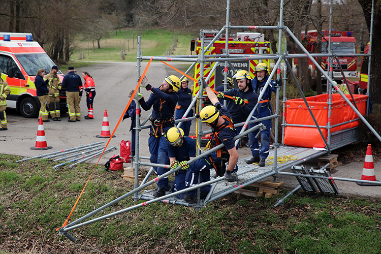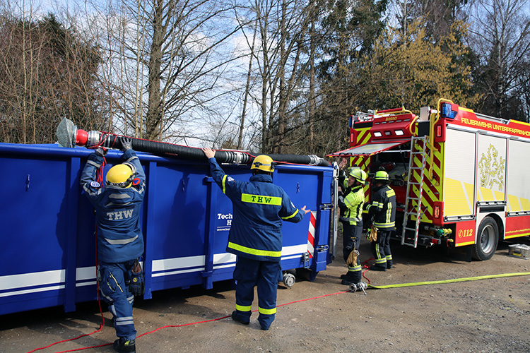 Die Heranführung und Verteilung der Feuerwehreinsatzkräfte in dem weitläufigen und anspruchsvollen Gelände sowie der Aufbau der Wasserversorgung wurde ebenfalls schnell und koordiniert vorgenommen. Das Zusammenspiel von Technischem Hilfswerk, Sanitätsdienst, Wasserwacht, Polizei und Feuerwehr funktionierte reibungslos und führte zu einem vollständigen Erreichen der Übungsziele.